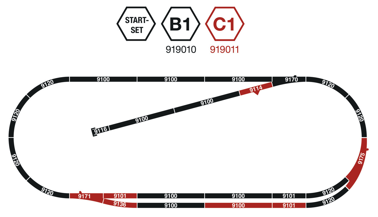Cet exemple correspond au contenu des coffrets de départ B1 - 919010 et C1 - 919011