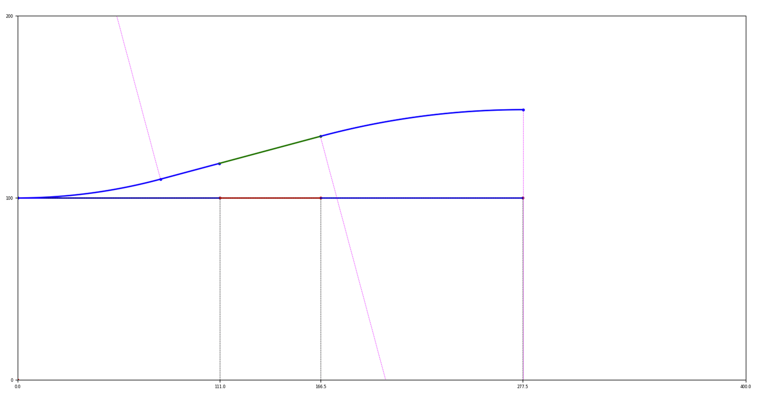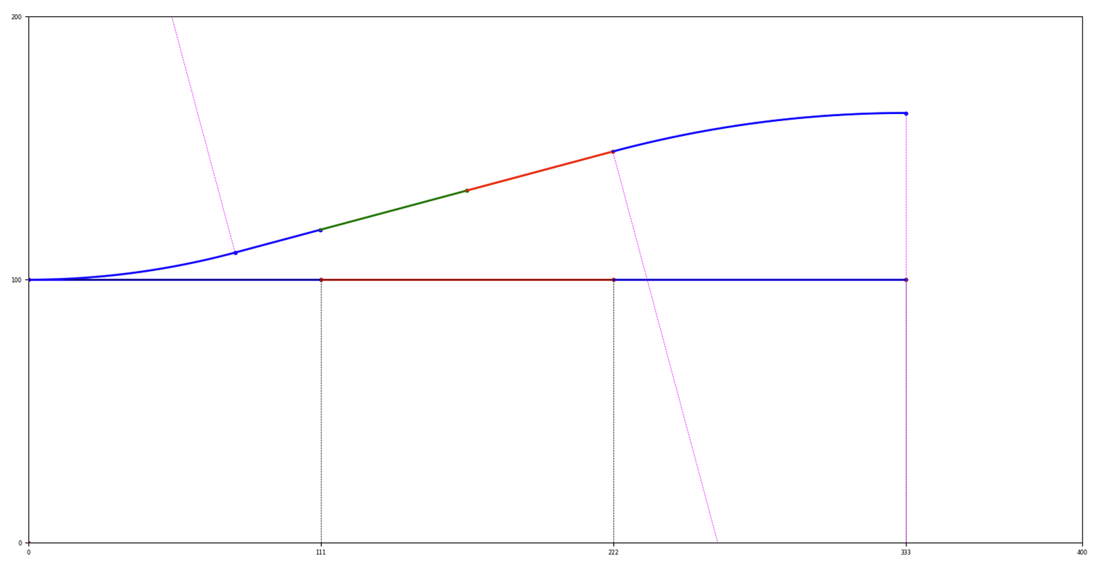 100 # Ligne droite de longueur 100