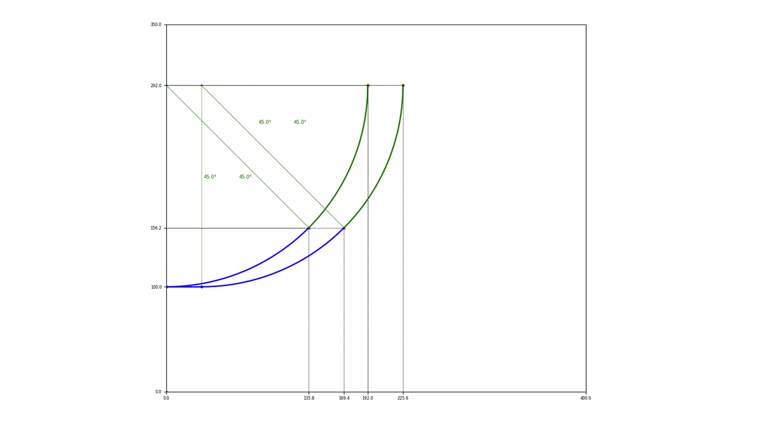 192 , 45 # courbe intérieure de l'aiguillage (= R1, 45°)