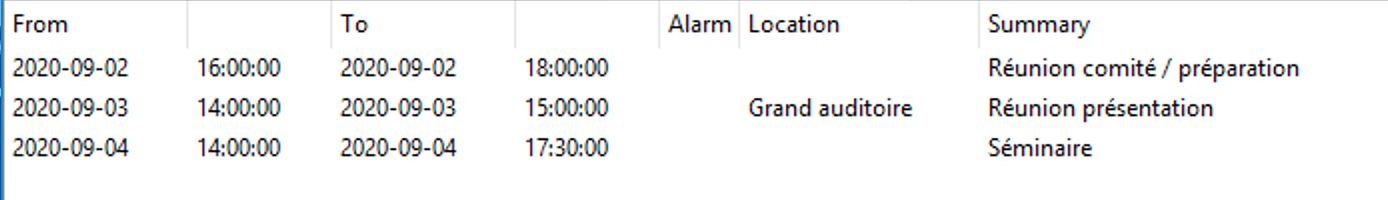 - Si on veut recréer un fichier ICS, il faut d'abord l'effacer manuellement.