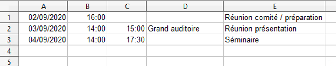 - une deuxième cellule de format "heure" est interprétée comme heure de fin