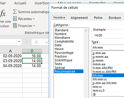 Attention, le format des cellules défini dans Excel est important :