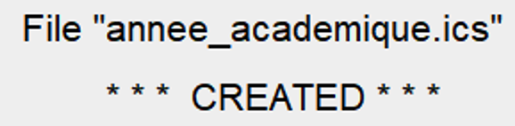 - Une fois le fichier ICS créé, un message de confirmation s'affiche.