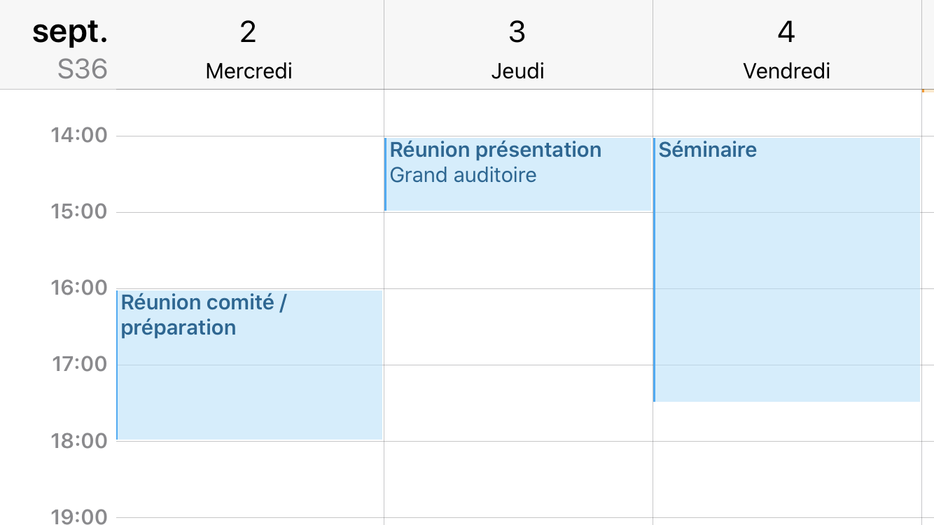 Le destinataire n'a qu'à double-cliquer sur le fichier ICS en pièce jointe et la liste des événements s'ajoute instantanément à son agenda !