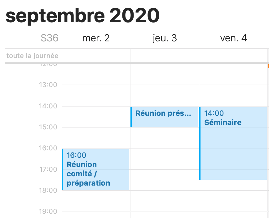 - une heure de fin (si on souhaite définir une durée autre que celle proposée par défaut)