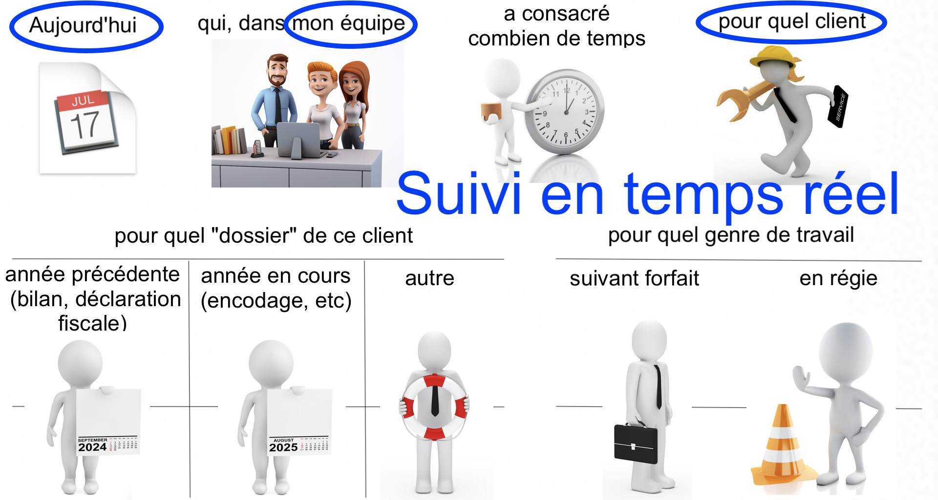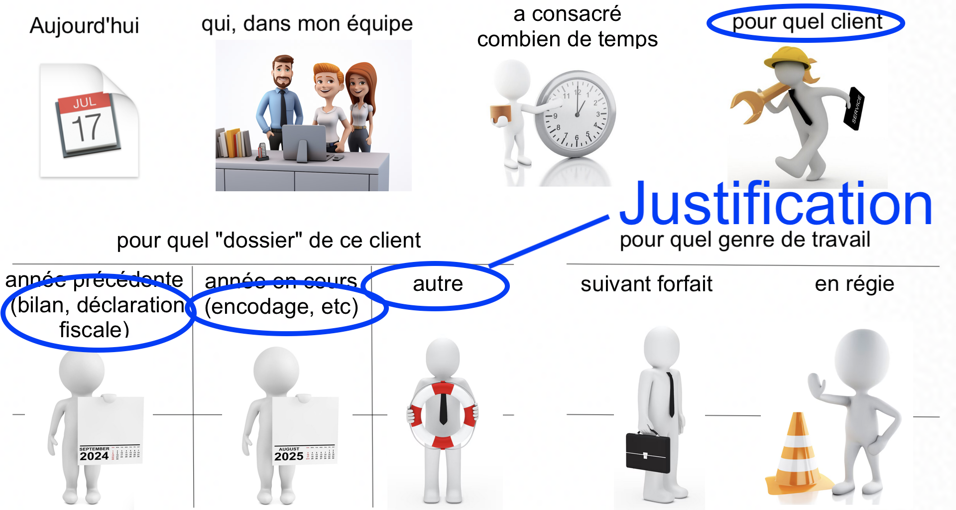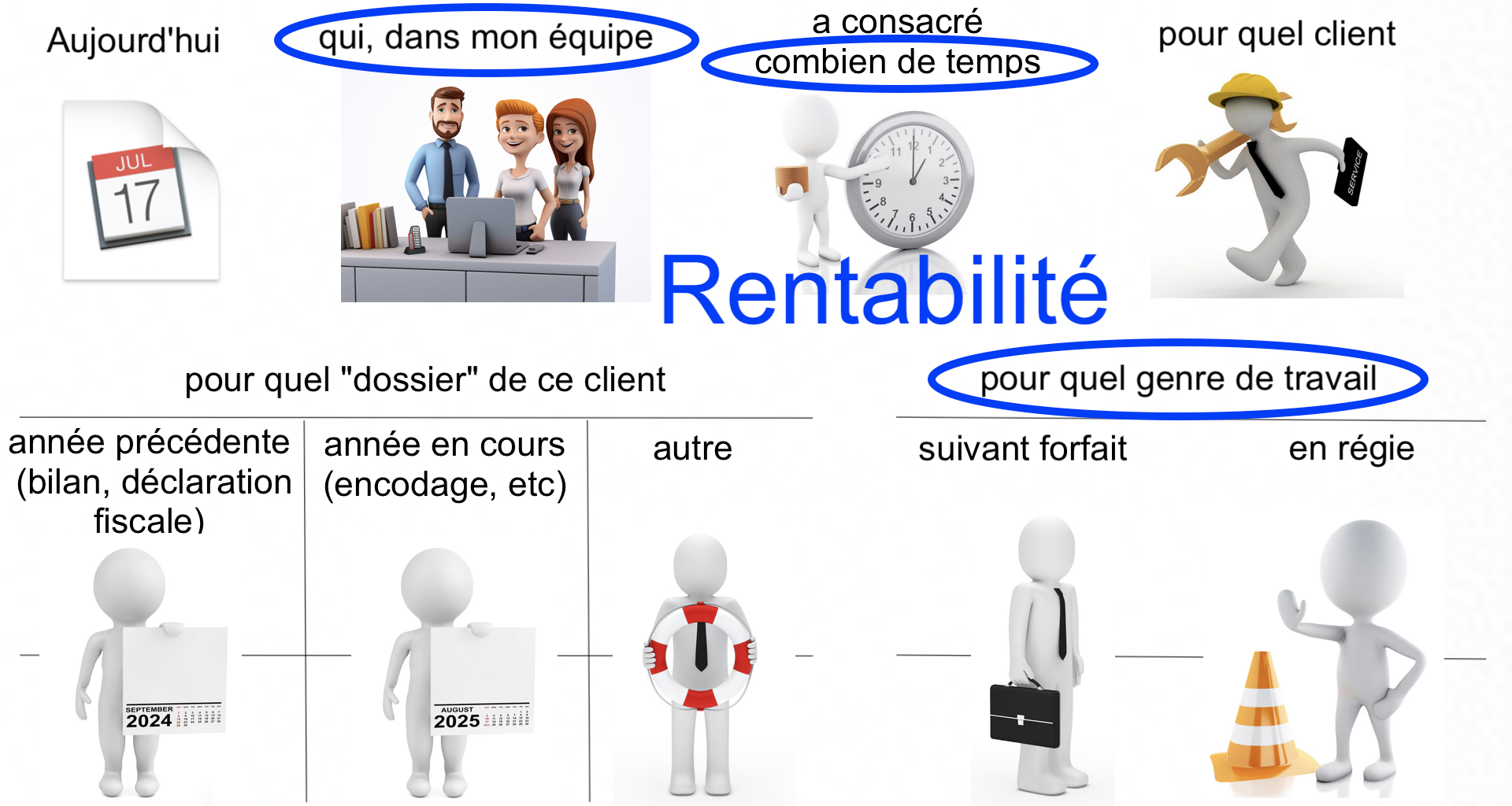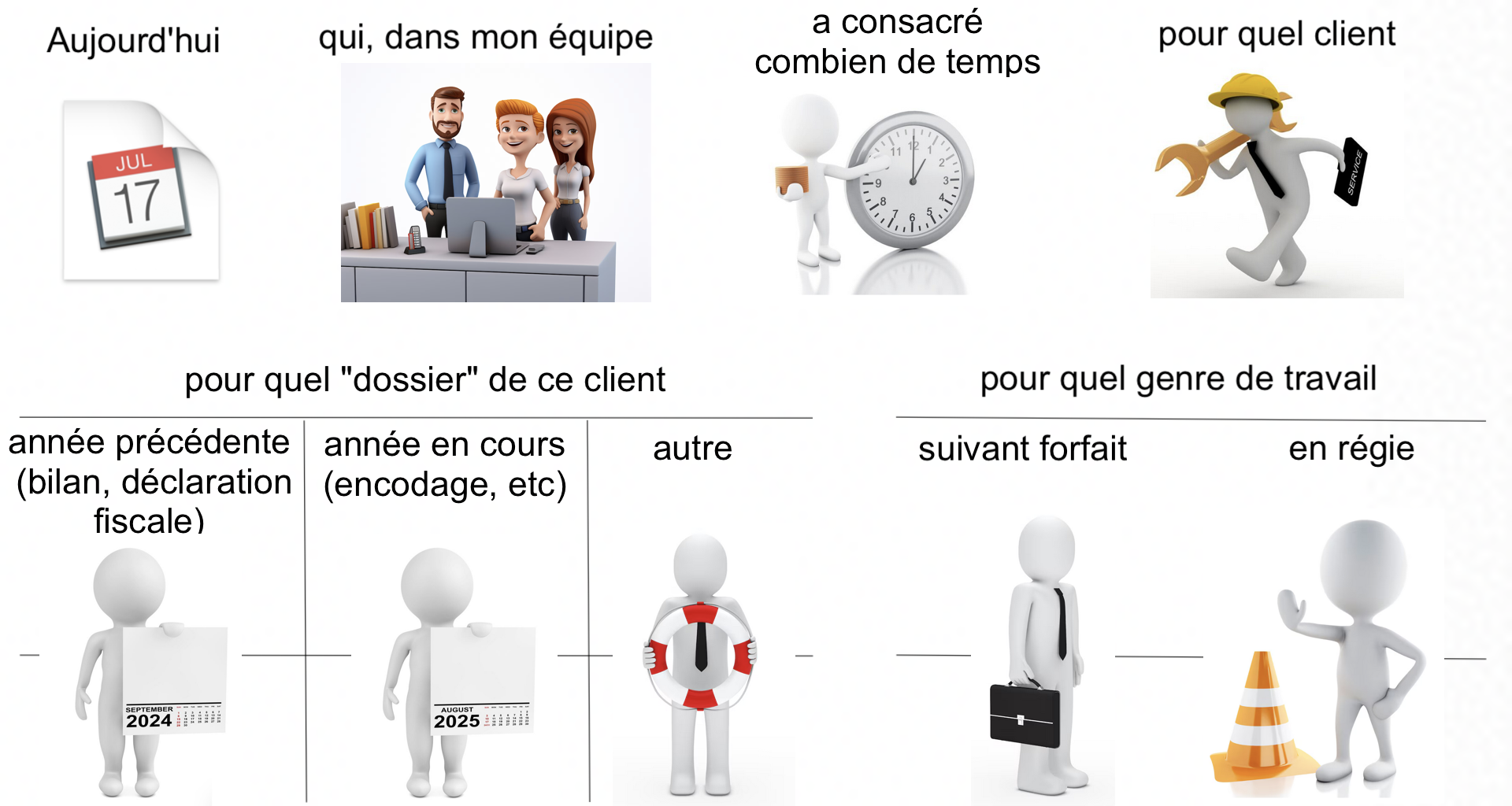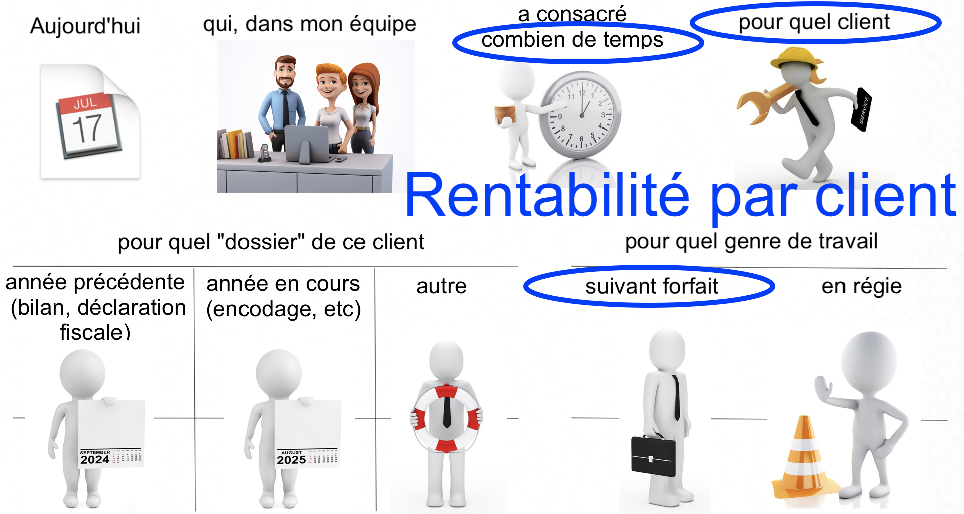 Les exemples donnés se rapportent aux activités d'un bureau comptable, mais ils peuvent être extrapolés à la plupart des entreprises de services.